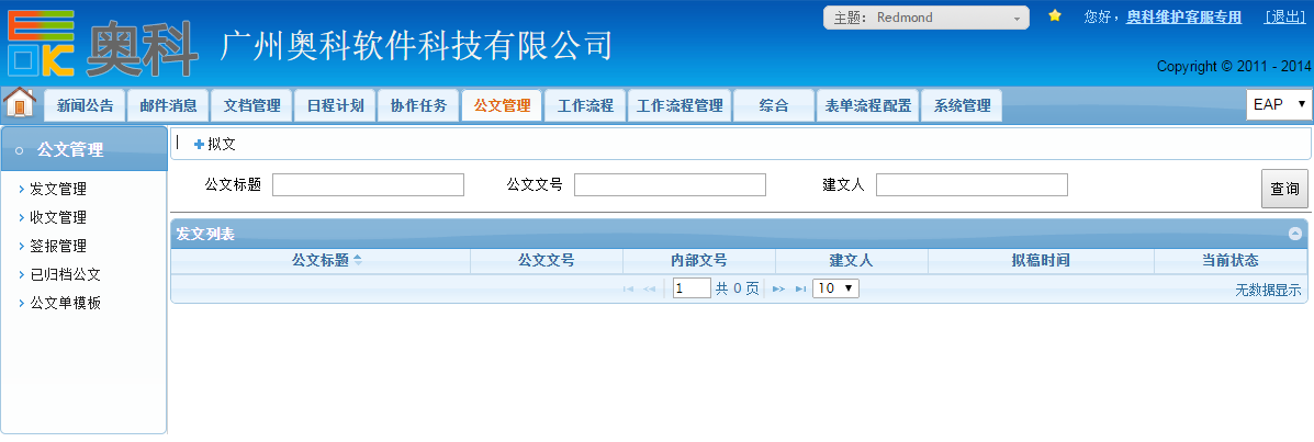 奥科OA协同办公平台针对国企、政府等特定机构,提供专业的公文管理平台: