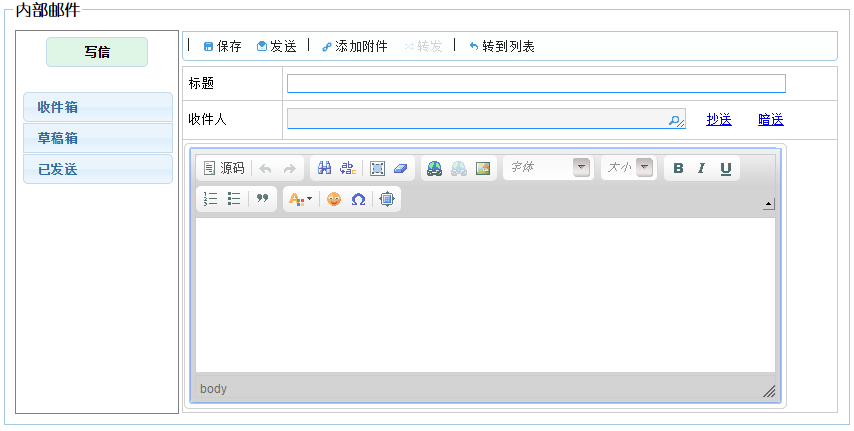 全面的消息体系奥科OA协同办公平台提供内部邮件、内部消息可用于即时传递消息。具体消息下发途径包括但不限于:网页、EIM即聊手机端、EIM即聊PC端、GSM短息猫、HTTP短信接口、PushMail下发等。 内部邮件内部邮件通常被称为OA邮件,是用于企业内部员工之间的邮件互发,是一种较为正式的快捷的沟通方式: ![]() 发送邮件的方式,与常规的网页版邮箱发送邮件的方式类似,可以包括图文,附件等: ![]() 内部消息内部消息是用于企业内部员工的较随意的沟通、系统消息的下发,跟QQ消息、论坛消息有相似之处。虽有相似之处,但本系统内部消息跟QQ消息又有很大的区别: 1、QQ消息是用于已加为好友的用户之间传递消息,而本系统的内部消息,是用于企业内部所有员工之间的沟通,无需加为好友即可通讯,方便工作开展; 2、QQ消息是没有接口发送系统消息的,比如系统的流程关注消息(有接口的腾讯产品叫RTX腾讯通,针对企业有较高的收费),而本系统的内部消息,天然集成与平台之上,保证企业消息、系统消息顺畅传达。 ![]() 简单直观,瞬间即可完成内部消息的发送: ![]() |