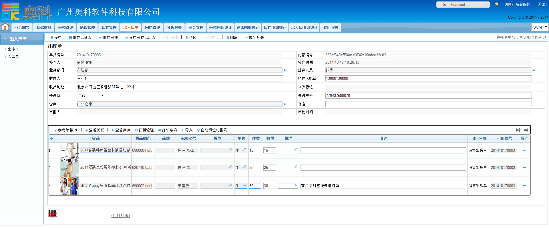 销售出库: